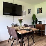 这家80平方米的宿处配有平板电视,小厨房和熨斗和熨衣板,俯瞰山脉. 这套公寓为4位客人提供空间. 每间浴室里都有吹风机,睡袍和毛巾.